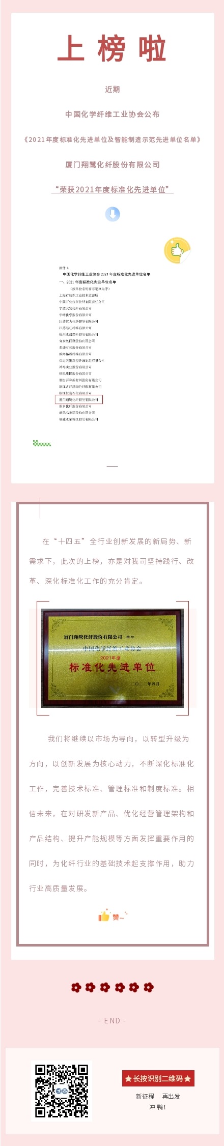 翔鷺化纖榮獲2021年度中國化學纖維工業協會標準化先進單位
