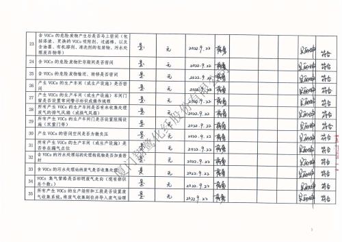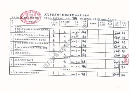 2022年第三季度揮發性有機物整治企業自查表